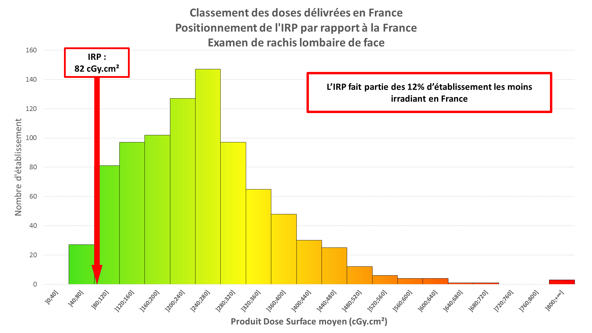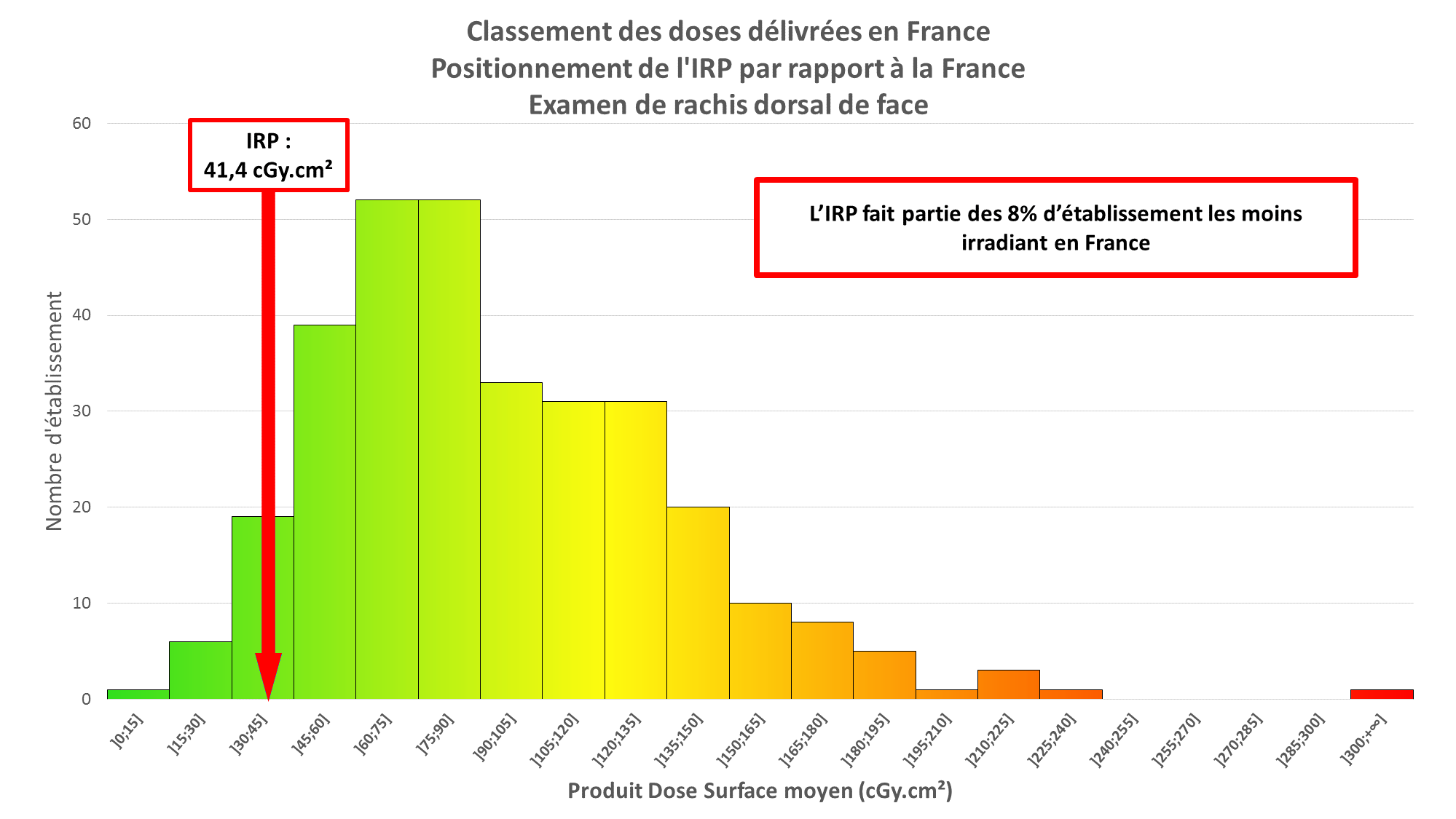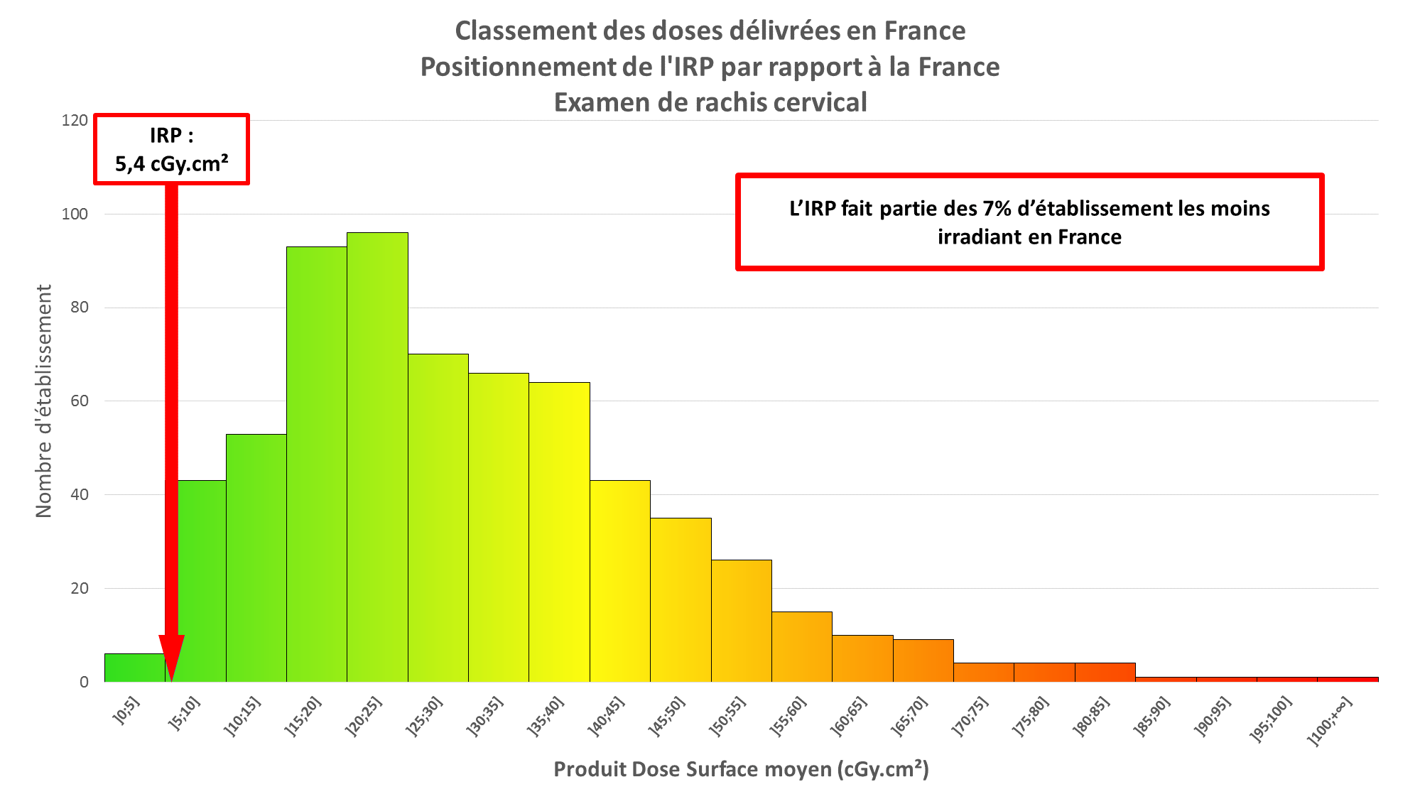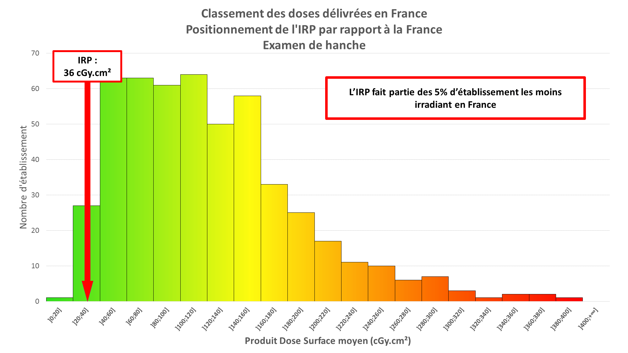 La comparaison des doses utilisées par rapport aux autres centres français (données fournies par l’Institut de radioprotection et de sureté nucléaire (IRSN)) montre tout d’abord une grande disparité entre les établissements pour un même type d’examen.